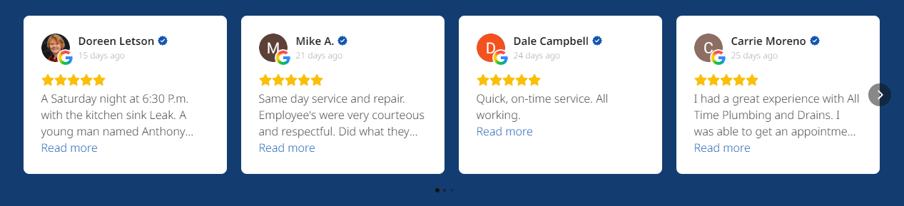 As experienced plumbing professionals serving Mesa and Phoenix, AZ, we know that quality service makes all the difference. You can trust us to go above and beyond to address any plumbing issue you face. Our dedication to customer satisfaction has earned us a reputation for reliability and excellence. At All Time Plumbing and Drains, we won’t rest until you’re 100% satisfied with our services, and we’ll do everything possible to ensure your plumbing system is functioning flawlessly.